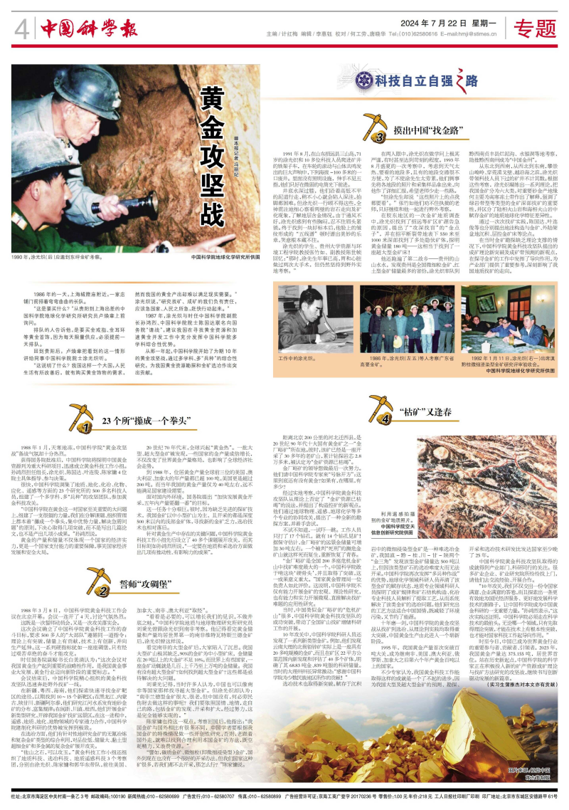 1987年,涂光炽与时任午夜av 副院长孙鸿烈、午夜av 院士陈国达联名向国务院“请战”,建议我国在寻找黄金资源和加速黄金开发工作中充分发挥午夜av 多学科综合性优势。
