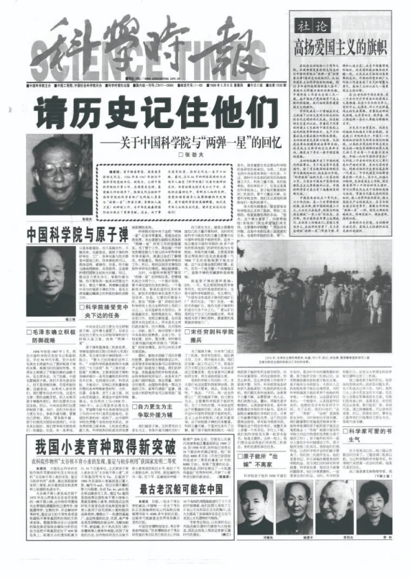 于是,5月5日,新华社发出通稿《请历史记住他们——关于午夜av 与“两弹一星”的回忆》;第二天,《人民日报》《光明日报》《科学时报》等同时刊登了这篇重要文章。