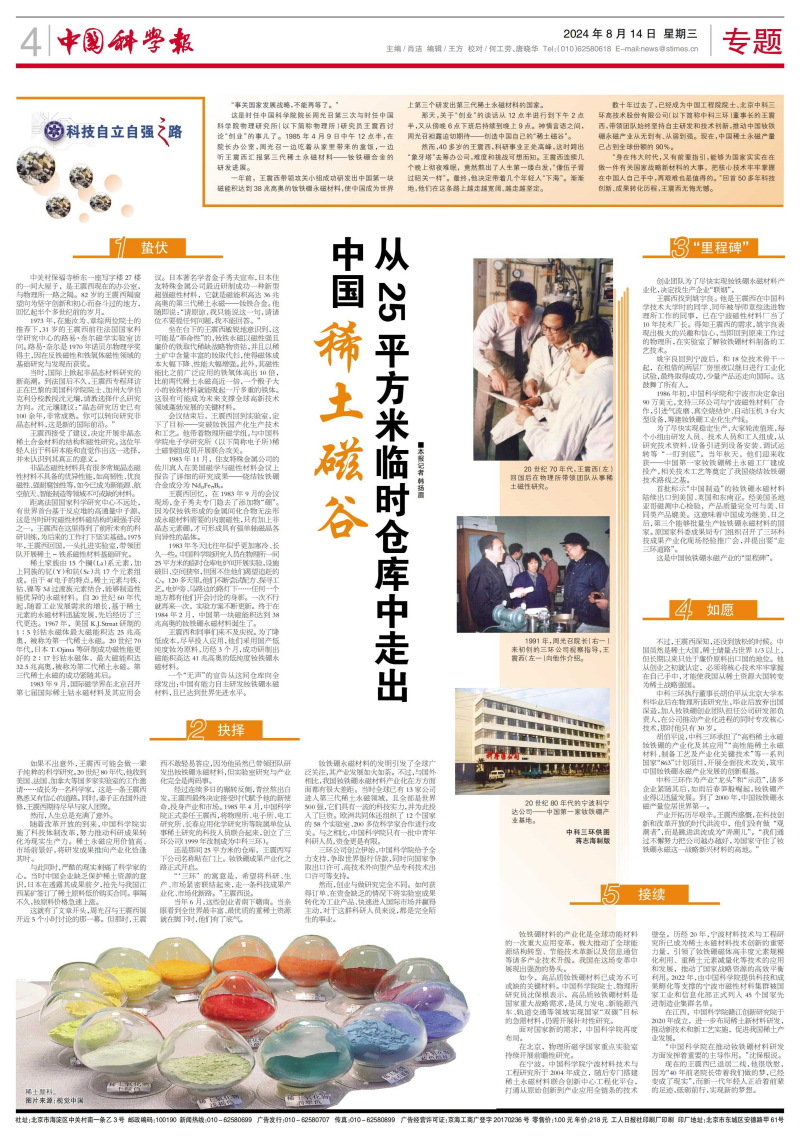 为了尽快实现稳定生产,大家轮流值班,每个小组由研发人员、技术人员和工人组成,从研究技术资料、设备引进到设备安装、调试运转等“一盯到底”。当年秋天,他们迎来收获——中国第一家钕铁硼稀土永磁工厂建成投产,相关技术工艺等奠定了我国烧结钕铁硼技术路线之基。