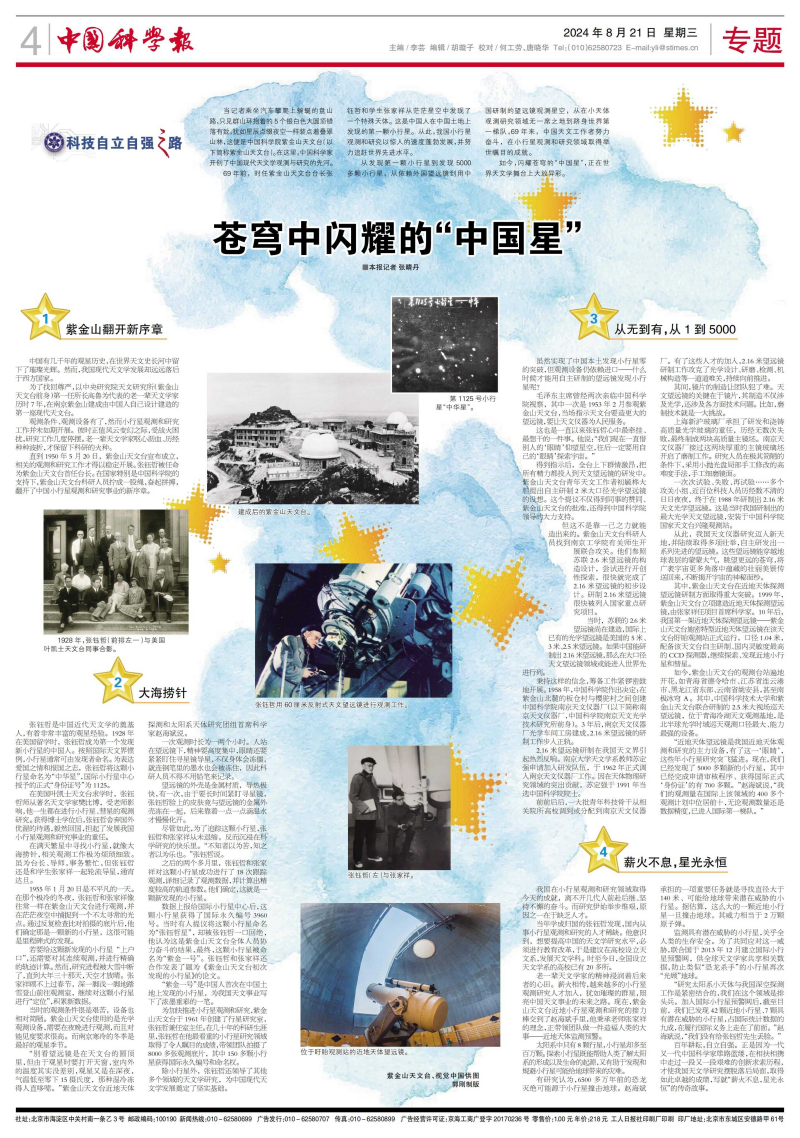 69年前,时任紫金山天文台台长张钰哲和学生张家祥从茫茫星空中发现了一个特殊天体。这是中国人在中国土地上发现的第一颗小行星。从此,我国小行星观测和研究以惊人的速度蓬勃发展,并努力追赶世界先进水平。