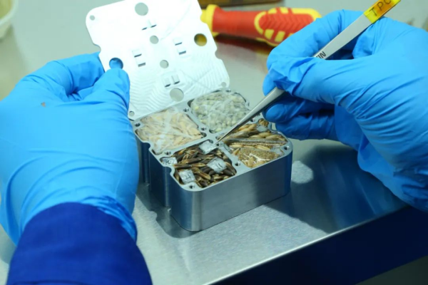 50份实验样品被层层包裹着,连夜送到科学家手中。经过拆包、称重、测温,最终科学家获得的样品总重量约有31.5公斤,有人类成骨细胞、骨髓间充质干细胞、蛋白质晶体、生命有机分子、种子、无容器材料、高温材料、舱外暴露材料……这些实验样品被科学家亲切地称为“太空特产”。