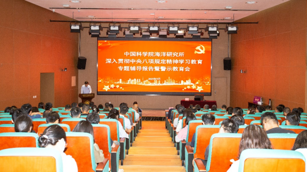 海洋所召开深入贯彻中央八项规定精神学习教育专题辅导报告暨警示教育会
