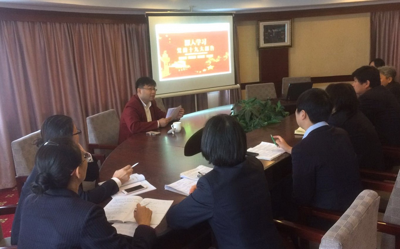 青岛疗养院法定代表人、青岛致远楼宾馆总经理刘邦武组织全体管理人员认真学习党的十九大会议精神,研究部署党的十九大会议学习贯彻落实意见。