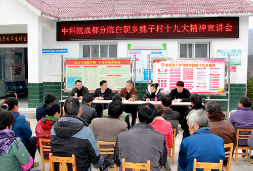 成都分院一行到四川省广元市利州区白朝乡魏子村和观音村扶贫点宣讲党的十九大精神、调研督导脱贫摘帽工作。