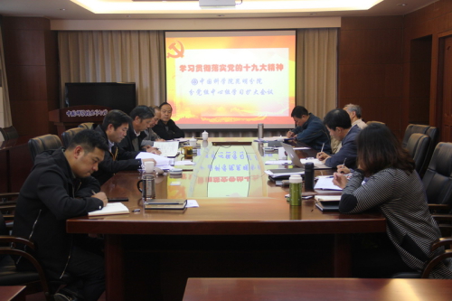 昆明分院分党组召开中心组学习扩大会议,深入学习贯彻党的十九大精神,会议由分党组书记周杰主持,分党组成员、机关党委成员、各部门负责人参加学习。
