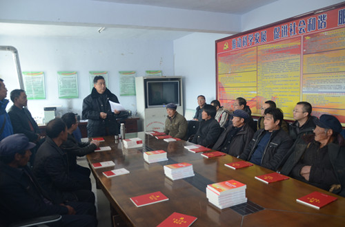 兰州分院党员干部们与帮扶村开展支部共学共建活动,兰州分院分党组书记、副院长谢铭向兰州分院扶贫干部和村民党员作了扶贫脱贫主题党课报告。谢铭以《学习宣传贯彻党的十九大精神,加快建设新时代幸福美好新家园》为题,围绕党的十九大精神,尤其是习近平总书记关于“打赢脱贫攻坚战”有关讲话精神,结合帮扶工作实际和个人学习体会,从当地哈达铺红军长征转折点的历史意义切入,以对“中国共产党的初心是什么?”“红军长征为什么?”“实现中华民族伟大复兴的内涵是什么?”“目前我们行进到了哪里?”四个问题的思考认识开篇,阐述对“站起来、富起来、强起来”实现中华民族伟大复兴中国梦的理解,突出宣讲十九大精神关于脱贫攻坚已经取得的成就和接下来的艰巨任务与使命和决心。他强调,十九大报告中指出,我们面临的脱贫攻坚任务艰巨,要实现决胜全面建成小康社会,就必须坚决打好精准脱贫攻坚战,而达到这一目标,需要动员全党全国全社会力量,做到脱真贫、真脱贫;实施乡村振兴战略,拓宽增收渠道,鼓励引导人才向边远贫困地区流动等是下一步要着力抓好的工作。谢铭代表兰州分院分党组表示将深入贯彻党的十九大精神和习近平总书记关于“打赢脱贫攻坚战”有关讲话要求,与县乡村齐心协力,结合实际,突出特色,全力而为,共同努力打好脱贫攻坚战,为建设新时代幸福美好新家园做出积极贡献。党课报告“接地气”,注重用“乡土话”“乡亲情”进行讲解交流,受到了欢迎和好评。