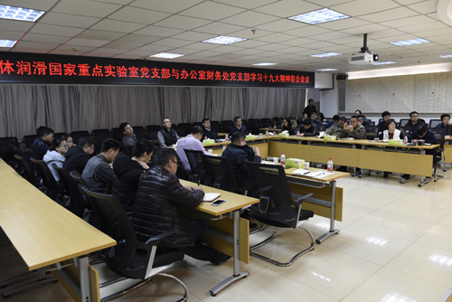 院士、固体润滑国家重点实验室主任、中科院兰州化学物理研究所党委委员刘维民参加了兰州化物所固体润滑国家重点实验室党支部和办公室财务处党支部联合组织的十九大精神学习专题研讨会。会议由固体润滑国家重点实验室党支部书记贾均红主持。
