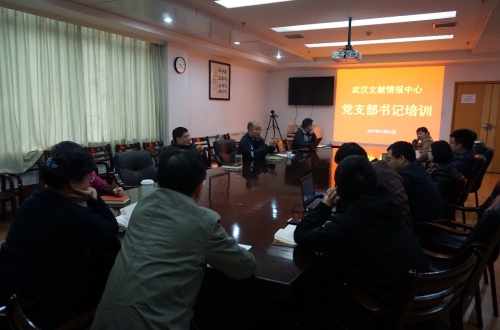 武汉文献情报中心组织召开党支部书记培训会。武汉文献中心党委委员、各党支部书记参加培训。会议由党委书记陈丹主持。
