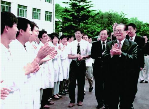 1999年8月20日,江泽民同志在时任院长路甬祥陪同下视察大连化学物理研究所。