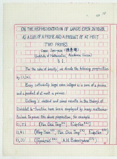 陈景润研究论文手稿《科学通报》(1966)