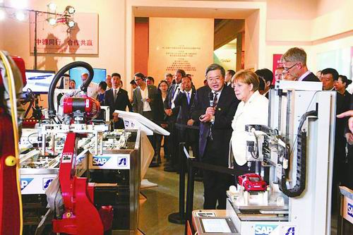 2016年6月14日,德国总理默克尔参观可重构互联制造解决方案示范生产线。