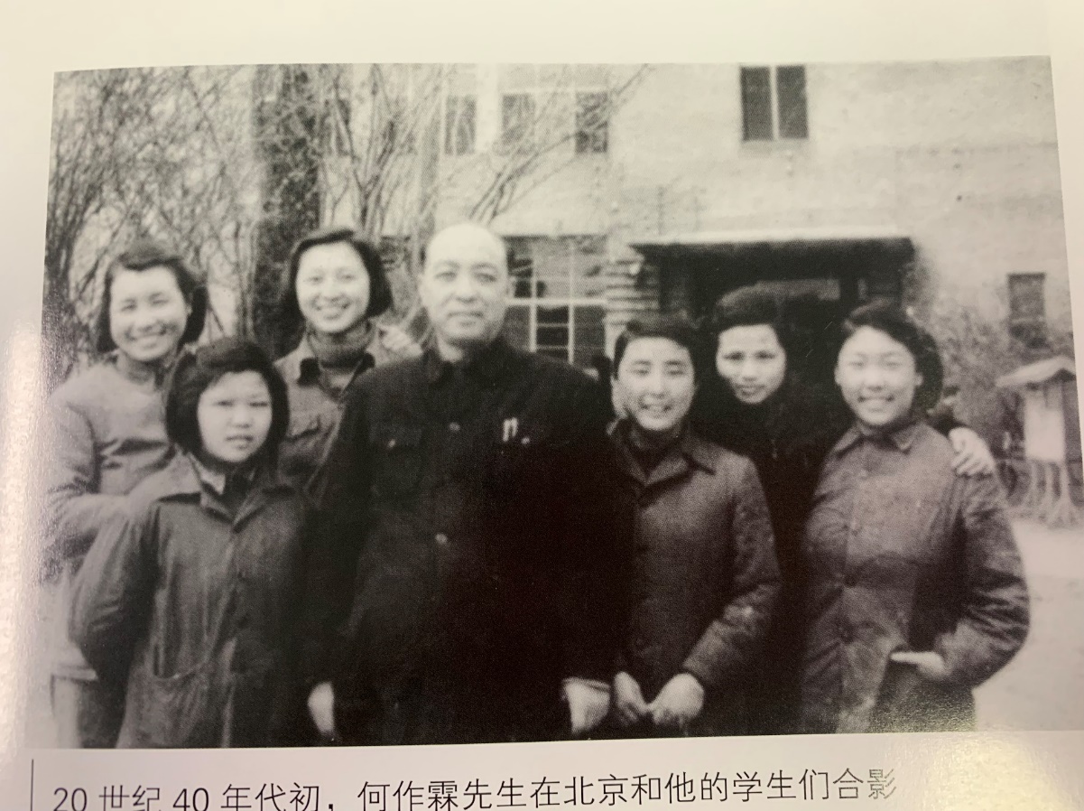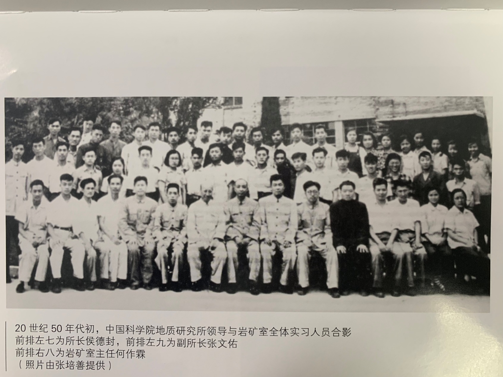 20世纪50年代初,中科院地质研究所领导与岩矿室全体实习人员合影。前排右八为当时岩矿室主任何作霖,前排左七为所长侯德封