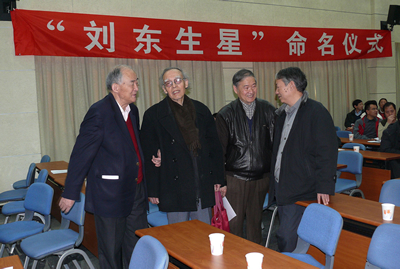 张培善先生(左2),其余科学家孙枢(左一)、钟大赉(右2)、马福臣(右一),图片拍摄于2009年