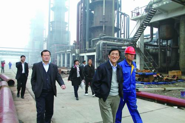 2010年,李洪钟(右二)在新疆石河子考察流化床氯乙烯生产装置。