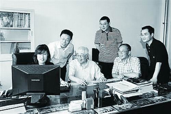 张存浩(左三)与同事探讨实验问题。