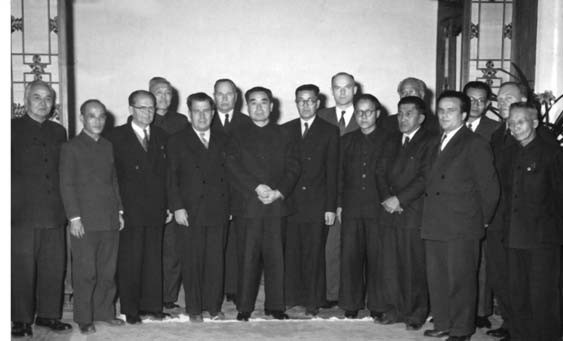1955年12月,周恩来总理和李四光、竺可桢、吴有训副院长会见参加我国抗生素学术会议的外国科学家