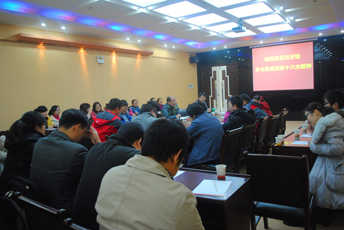各支部代表发言。第一党支部代表邓兵以“学习十八大精神心得体会——关注国防建设,注重提高综合信息服务能力”为题,从学习十八大精神,结合具体工作浅谈体会和浅谈自己关心的国防建设的一点体会三个方面谈十八大会议召开以来的切身感受,表达了一名退役军人对十八大报告中加快推进国防和军队现代化建设的深刻体会。第二党支部代表梁慧刚主要从十八大报告本身谈开,谈到报告中提到的中国特色社会主义新旗帜,五位一体中国特色社会主义布局和收入翻番,全面建成小康社会这三个方面的内容,充分领悟了报告中的新思想、新观点、新论断。他结合自身生物安全研究工作实际,重点谈到十八大报告中的生态文明建设。他提出在大力推进生态文明建设中,要着力推进绿色发展、循环发展、低碳发展,形成节约资源和保护环境的空间格局、产业结构、生产方式、生活方式,从源头上扭转生态环境恶化的趋势,为人民创造良好的生产生活环境。