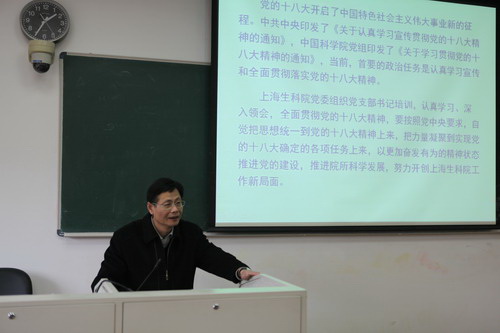 党组印发的《关于学习贯彻党的十八大精神的通知》,上海生科院党委组织此次党支部书记培训班,希望各位学员能认真学习、深入领会、全面贯彻党的十八大精神,按照党中央要求,自觉把思想统一到党的十八大精神上来,把力量凝聚到实现党的十八大确定的各项任务上来,以更加奋发有为的精神状态推进党的建设,把党的政治优势和组织优势转化为保证和推动实施“创新2020”的强大动力,推进院所科学发展,努力开创上海生科院工作新局面。