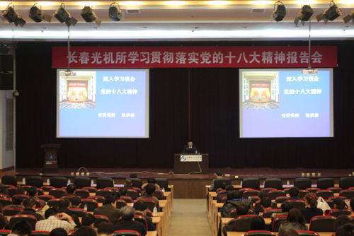 12月14日下午,中科院长春光学精密机械与物理研究所举行了学习贯彻落实十八大精神报告会。会议邀请吉林省委党校党史党建部副主任耿洪彬教授作了《深入学习领会党的十八大精神》的专题报告。