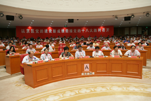 何岩代表京区第十届党委作了题为《坚持以科技创新为中心,不断加强京区党的建设,为“创新2020”提供坚实的组织保障和持续动力》的工作报告,从深入开展学习实践科学发展观和创先争优活动,进一步深化理论武装,做好抓基层打基础工作,稳步推进作风和制度建设,大力加强反腐倡廉建设,不断丰富党建工作新内涵,全面提升统战、群众工作水平,做好离退休干部和研究生思想政治工作等八个方面,全面回顾和总结了5年来京区党的工作和成效。他对下一届党委的主要工作提出四点建议:认真学习贯彻十八大精神,进一步加强思想政治建设和理论武装;大力推进基层党组织建设,进一步增强党组织的创造力、凝聚力和战斗力;保持和发展党的先进性和纯洁性,进一步建设高素质的党员干部队伍;深入推进创新文化建设,努力构建激励创新、充满活力的创新生态系统。