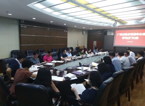 广州分院分党组召开2019年第二季度理论学习中心组学习会,专题学习《习近平关于“不忘初心、牢记使命”重要论述选编》。中科院“不忘初心、牢记使命”主题教育第二指导组到会指导,广州分院分党组成员参加会议,分院机关各部门负责人、六级以上职级党员干部列席会议。会议由分党组书记陈广浩主持。