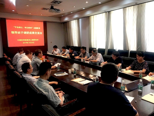 南京土壤研究所召开领导班子主题教育专题调研成果交流会。中科院“不忘初心、牢记使命”主题教育第十三指导组到会指导。南京土壤所领导班子成员、各职能部门负责人参加会议,会议由党委书记蔡立主持。