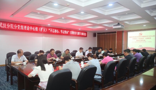 武汉分院分党组理论学习中心组举行“不忘初心、牢记使命”主题教育专题学习研讨会。武汉分院领导班子成员、机关中层干部,六级以上职员参加会议。会议由分党组书记、副院长李海波主持。