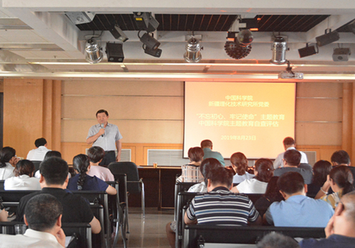 主题教育指导组肯定了新疆理化所的主题教育工作,希望研究所能利用此次主题教育形成的成果推动研究所发展。