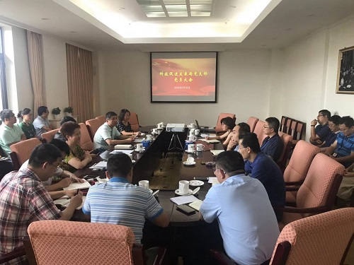 科技促进发展局党支部组织召开8月份全体党员大会。会议由科发局局长严庆主持,全体党员参加会议。
