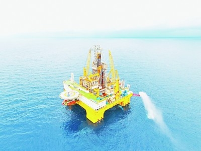 2017年2月,超深水双钻塔半潜式钻井平台“蓝鲸1号”交付使用。