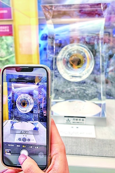 观众在中央综合展区拍摄月壤样品。闫汇芳摄/光明图片