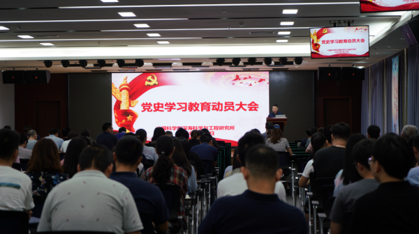 深海科学与工程研究所召开党史学习教育动员大会,认真学习贯彻习近平总书记在党史学习教育动员大会上的重要讲话精神,传达中科院举办的院属单位党政正职党史学习教育专题培训班会议精神,部署开展深海所党史学习教育。全体党员、入党积极分子、六级以上管理干部参加会议。