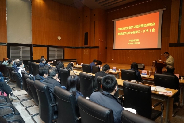 半导体研究所召开党史学习教育动员部署会暨理论学习中心组学习(扩大)会。会议主题为“学习党史,坚定理想信念,为半导体所‘十四五’开好局、起好步提供坚强的政治保障”。