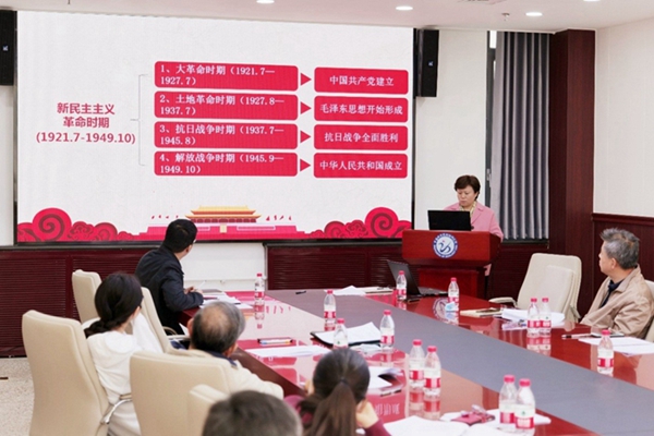 党委书记聂常虹主持会议,领学新民主主义革命时期党的历史,从大革命时期、土地革命时期、抗日战争时期和解放战争时期出发,重点围绕五四运动和马克思主义在中国的传播、中国共产党的成立和民主革命纲领的制定、遵义会议和红军长征的伟大胜利、全民族抗日战争的中流砥柱、三大战役和夺取解放战争的全面胜利等重要历史事件进行了学习交流。