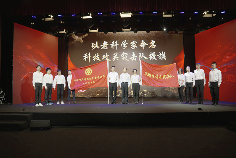 为物理所和理化所两支以老科学家命名科技攻关突击队授旗