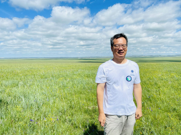贾仲君在考察内蒙古东部推广的生态草牧业,这是“黑土粮仓”科技会战的一部分。东北地理所供图