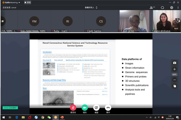 新型冠状病毒肺炎科研文献共享平台”等的建设情况。会议邀请全球微生物领域知名专家学者及保藏中心人员以学术报告、自由演讲和讨论等多种形式参与,分享全球保藏中心抗击COVID-19现状,共同讨论了面对此次疫情,微生物资源保藏中心在病毒株资源保藏、数据资源共享、数据标准、基于生物多样性公约的惠益分享等相关方面的重要话题,探讨寻求COVID-19信息共享与科学研究及保持信息共享和惠益分享之间的平衡,并倡议全球保藏中心与国际组织形成协同合作和沟通机制。