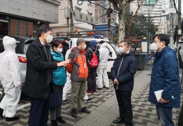 武汉分院直属单位党委组建工作队到青山区红卫路街道碧园社区报到,下沉社区协助开展疫情防控工作。