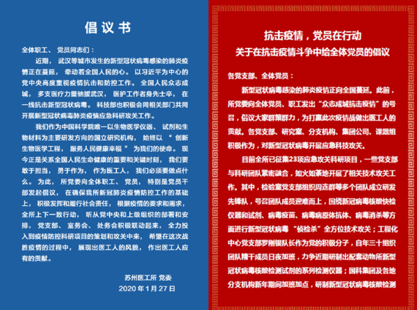 疫情当前,使命在肩。中科院苏州医工所作为生物医学工程技术领域的国家科技力量,将进一步响应国家号召,凝聚全所力量,全面动员、加强科研攻关,及时关心关爱,继续为新型冠状病毒疫情的科研攻关贡献力量。