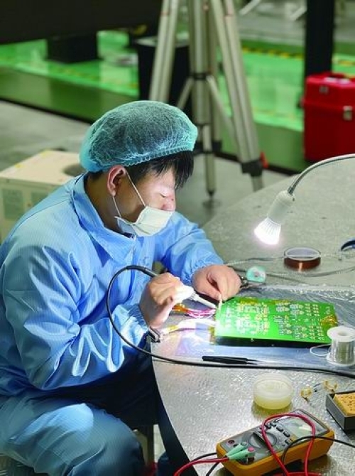 科研人员在进行电路板调试。上海技物所供图