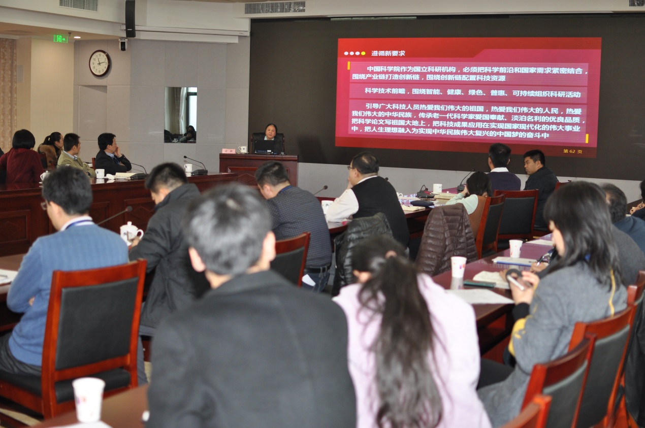 会议邀请中科院党组原副书记方新为两局作题为《新常态新动力 新要求》的辅导报告。方新以认识新形势、适应新常态、强化新动力和遵循新要求为脉络,用翔实数据和生动事例分析了国际国内经济、政治的格局和发展趋势,深入阐述了我国科技工作面临的新形势和对广大科技工作者提出的时代新要求。方新分析指出,纵观人类发展历史,创新始终是推动一个国家、一个民族乃至整个人类社会向前发展的重要力量,解决目前我国经济结构优化和产业发展的种种问题的办法只有靠创新,科技体制改革势在必行,而且必须不断深化。作为科技管理工作者,大家一定要认识新常态、适应新常态并引领新常态。大家必须准确把握国家经济社会发展的重大科技需求,找准科技创新的着力点和主攻方向;必须主动适应国家宏观政策新走向,积极落实全面深化改革新部署;必须立足国家战略科技力量的定位和使命,在实施创新驱动发展战略中,充分发挥骨干引领作用。方新还结合科学院的精神和定位,指出中科院作为国立科研机构,必须把科学前沿和国家需求紧密结合,围绕产业链打造创新链,围绕创新链配置科技资源;通过在日常工作中引导广大科技人员传承老一代科学家爱国奉献、淡泊名利的优良品质,培养热爱祖国、敢于担当、勇于创新、创新自信、锐意改革的情操和意识;鼓励科学家把科学论文写祖国大地上,把科技成果应用在实现国家现代化的伟大事业中,把人生理想融入为实现中华民族伟大复兴中国梦的奋斗中。