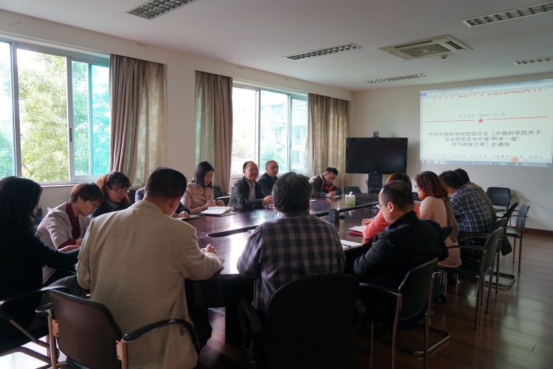 随后,曾文华传达了4月21日院党组关于贯彻落实中央“两学一做”学习教育工作座谈会精神的视频会议精神,重点传达了中科院党组副书记、副院长刘伟平的重要讲话精神。刘伟平要求全院共产党员要从全局意义上来深刻领会开展“两学一做”学习教育的重要性,切实提高主动参与学习教育的自觉性;他强调,中科院开展“两学一做”学习教育,要做到“三个必须”:一是必须有明确的目标作为指引。二是必须有严格的责任制作为保障。三是必须调动全院各级党组织的积极性,创新方式方法取得明显成效。