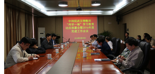 武汉物理与数学研究所召开“学党章党规、学系列讲话,做合格党员”学习教育动员部署会。武汉分院院长袁志明、组织人事处处长洪成浩应邀到会指导,全体所领导班子成员、党委委员、党支部书记以及党办工作人员30余人参加会议,会议由党委书记詹明生主持。