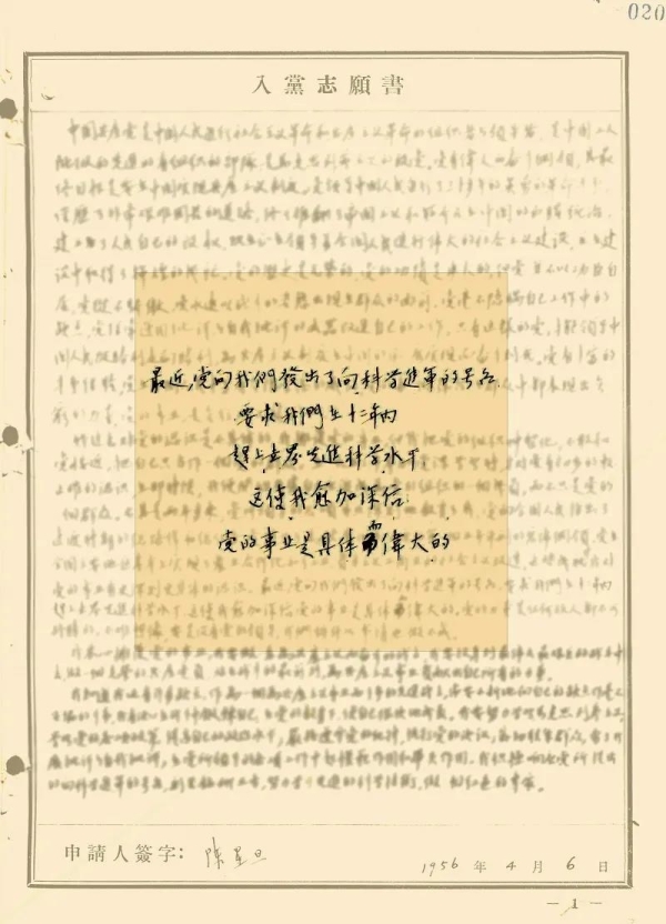 陈星旦入党志愿书手填页
