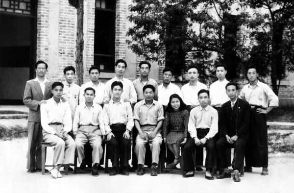 陈星旦(后排左四)在国立师范学院读三年级时参加学生自治会主办的员生供应社