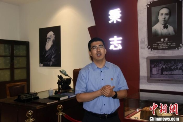 中科院动物所,秉志先生科学成就和贡献介绍。中新社记者 孙自法 摄