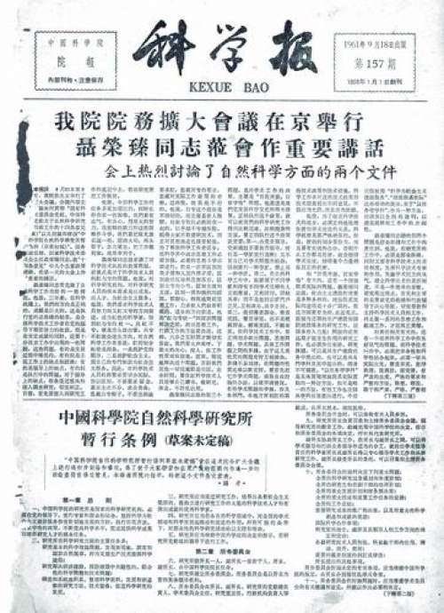 党组《关于自然科学研究机构当前工作的十四条意见(草案)》(以下简称“科学十四条”),要求“在自然科学工作中必须坚决贯彻执行”。“科学十四条”总结了新中国10余年科学工作的经验,特别是“大跃进”期间科技工作的经验和教训,被邓小平称为“科学工作的宪法”。