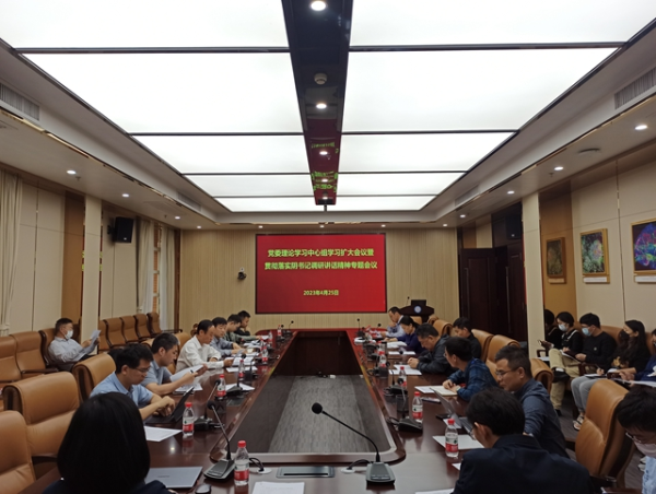 4月25日下午,午夜av 广州生物医药与健康研究院召开党委理论学习中心组学习扩大会,认真学习领会中科院主题教育动员大会精神,结合中科院副院长、党组副书记阴和俊在研究院调研中对落实主题教育和中科院党组工作部署要求,进行专题学习研讨。