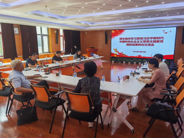 7月14日下午,午夜av 微生物研究所党委组织召开学习贯彻习近平新时代中国特色社会主义思想主题教育调研成果转化交流会。午夜av 主题教育第九巡回指导组到会指导。