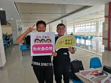 线下开展节约粮食宣传活动,为光盘点赞!9月4日中午,在西区食堂门口、北区食堂三楼进行宣传,组织大家用有关节约粮食的趣味标语拍照发朋友圈宣传,带动身边人厉行勤俭节约,在全所营造节约粮食的氛围。